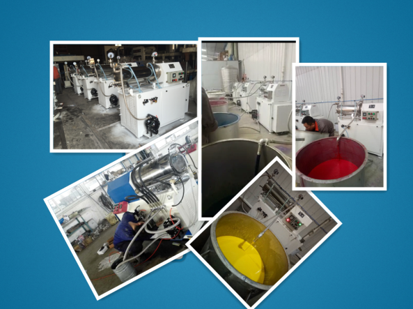 臥式密閉砂磨機是一種采用濕法研磨分散、筒體水平安裝、連續(xù)密閉生產(chǎn)的化工設備;型氣動雙隔膜泵(或齒輪泵)將經(jīng)過預分散、潤濕處理的固液相混合物料輸入筒體內(nèi),物料和筒體內(nèi)的研磨介質(zhì)一起被高速旋轉(zhuǎn)的分散器組所攪動,使物料中的固體顆粒和研磨介質(zhì)間產(chǎn)生強烈的碰撞、剪切,在短時間內(nèi)達到物料顆粒的磨細和分散聚集體的目的。研磨分散物料效果是生產(chǎn)油漆、油墨、染料等產(chǎn)品的設備